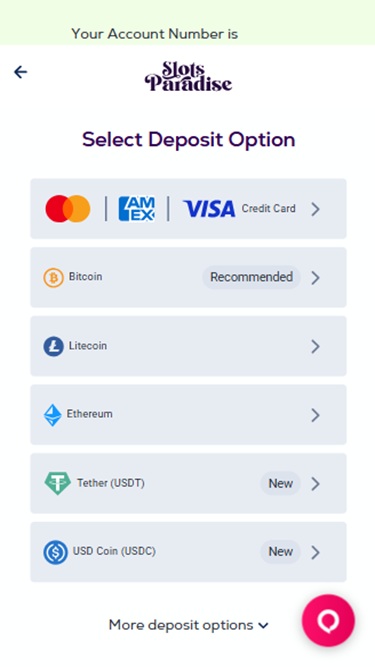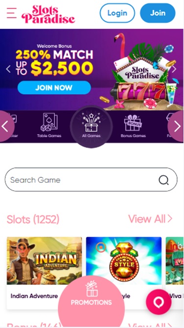 A única opção de idioma disponível aqui é o inglês, o que é compreensível, já que esta é uma plataforma voltada para o público americano. Além disso, é importante ressaltar que todo o catálogo de jogos do SlotsParadise Casino é totalmente otimizado para a experiência de jogo em dispositivos móveis. Dispositivos Android e iOS são totalmente compatíveis e nenhum aplicativo adicional precisa ser baixado para que você possa aproveitar sua experiência.