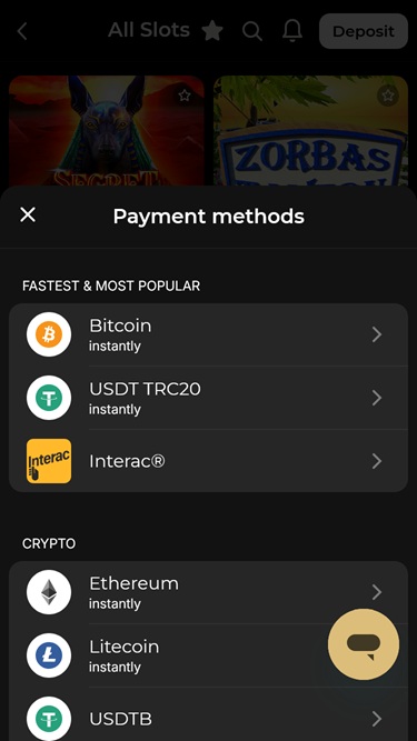 O cassino aceita tanto moedas fiduciárias quanto criptomoedas.
