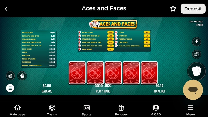 Existem vários jogos de Video Poker disponíveis para os jogadores. Entre eles estão Aces and Eights (1 mão e multimãos), All Aces, Bonus Deuces Poker, Bonus Poker, Bonus Poker Deluxe, Deuces Wild (1 mão e 4-100 mãos), Double Bonus Poker, Double Double Bonus Poker, Double Joker, Jackpot Deuces, Jacks or Better, Joker Poker, SupaJax e Tens or Better.
