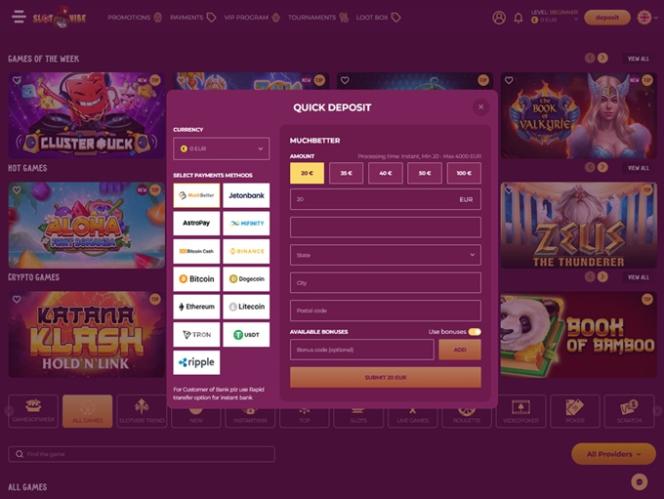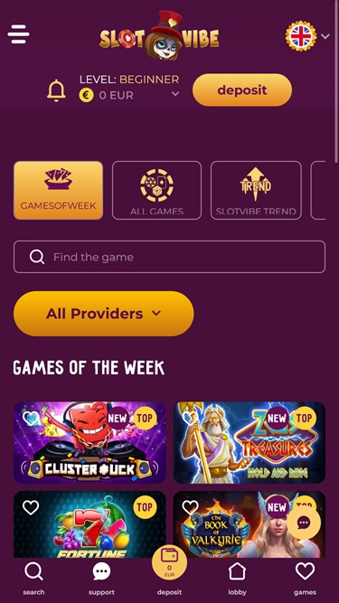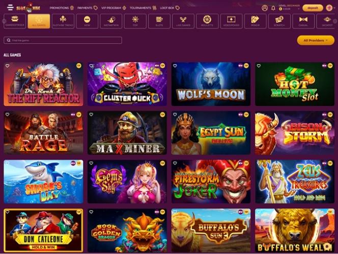 Com produtos de diversos desenvolvedores, o cassino SlotVibe é um lugar onde jogadores de todos os perfis podem encontrar algo adequado ao seu gosto. Yggdrasil, Playtech, Endorphina , Nolimit City e iSoftBet são apenas algumas das marcas cujos melhores jogos fazem parte do catálogo do operador.