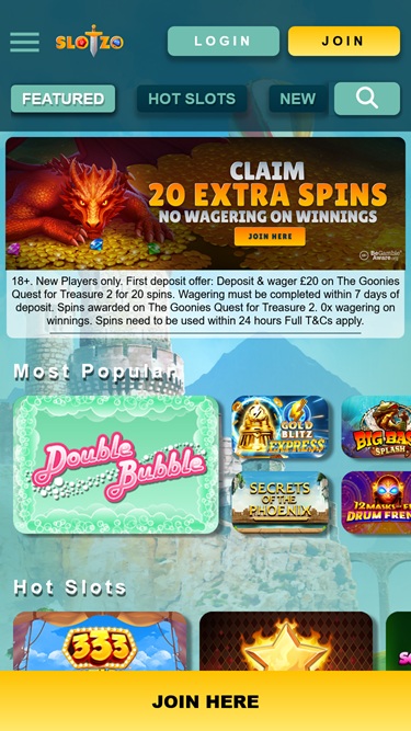 Slotzo é um site de apostas online pertencente e operado pela Jupiter Gaming Limited, com foco no mercado europeu de apostas. O cassino possui um design agradável e divertido, além de oferecer diversos recursos que o tornam uma opção interessante para quem busca um novo cassino online.