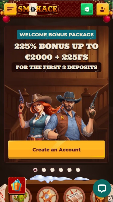 Além de três bônus de boas-vindas diferentes, os jogadores do SmokeAce Casino poderão desfrutar de torneios, três bônus Sheriff Set diferentes, um bônus Smoke, bônus Indian Wednesday, recargas de fim de semana e cashback semanal Rode.