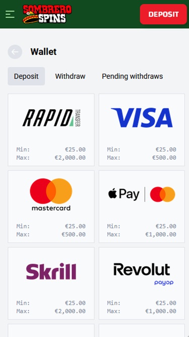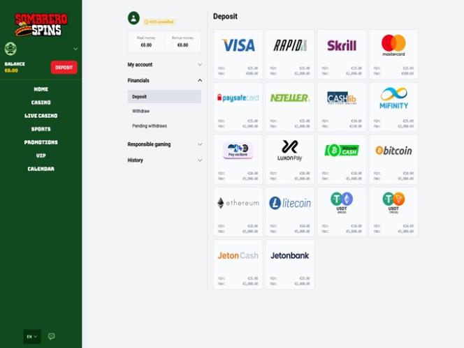Em termos de promoções e bônus, o Sombrero Spins possui um sólido plano promocional do qual os jogadores podem se beneficiar. Aqueles que criam contas novas podem esperar receber um generoso pacote de boas-vindas em seus depósitos iniciais , independentemente de preferirem jogar jogos de cassino ou apostar em esportes.