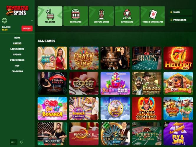 Felizmente, a equipe do Sombrero Spins entende isso perfeitamente, e é por isso que os jogadores têm a opção de jogar mais de 8.000 jogos de cassino exclusivos em seu site. A biblioteca inclui jogos lançados por mais de 90 fornecedores de software, proporcionando uma experiência de jogo diversificada e variada.