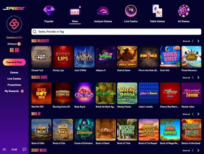 No Speedz Casino, os jogadores podem desfrutar de uma seleção incrível de jogos de mais de 90 fornecedores de software. O catálogo apresenta dezenas de categorias e gêneros para cada tipo de jogo, para que cada jogador encontre exatamente o que procura. Isso significa que você pode descobrir novos jogos a cada acesso, sem deixar de lado seus favoritos.