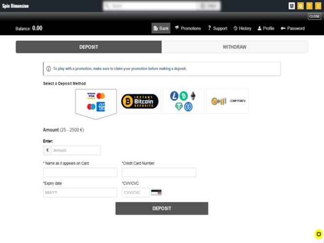 Saber que você é genuinamente valorizado como cliente é sempre gratificante. O Spin Dimension reconhece que clientes satisfeitos criam uma comunidade feliz e em constante crescimento, e que ofertas promocionais atraentes deixam os apostadores realmente felizes. E, de fato, as promoções deste cassino são excelentes.