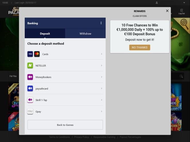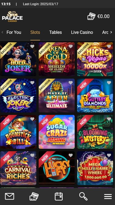 Todas as mensagens de texto que recebi do Spin Palace, mais de uma por dia, me deixaram louco. Parei de jogar lá também, não tive sorte.