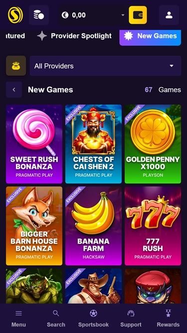 O lado esquerdo do site apresenta um extenso menu suspenso que permite aos jogadores navegar por todas as categorias de jogos disponíveis. Estas incluem slots, jogos de cassino ao vivo, lançamentos, jogos de mesa, programas de jogos e apostas esportivas. Além disso, os usuários também podem acessar torneios, promoções, suporte ao cliente e blogs através do menu suspenso.