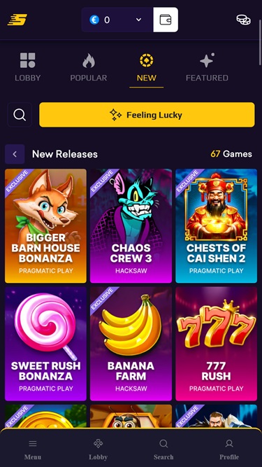 Como mencionado anteriormente, este site está muito bem estruturado. Lobby, Slots, Ao Vivo e Drops & Wins são as principais categorias de jogos que sugerimos que você explore — o cassino oferece uma enorme coleção de jogos.