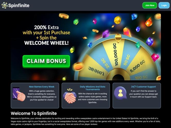 Em relação a promoções e bônus , o Spinfinite Casino é um site de jogos de azar com sorteios que oferece uma sólida gama de recompensas e incentivos para jogadores. Além de oferecer recompensas de fidelidade, a marca também apresenta uma excelente oferta de boas-vindas que concede Moedas de Ouro e Moedas de Sorteio gratuitas assim que os jogadores criam sua conta pela primeira vez.