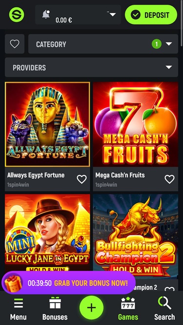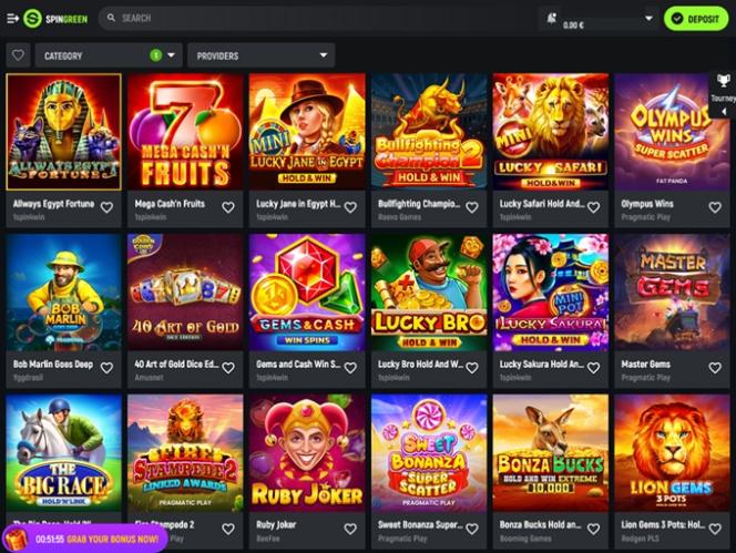 Observe que as regulamentações sobre jogos de azar online em sua jurisdição podem restringir o acesso a jogos de alguns desenvolvedores. É recomendável verificar a disponibilidade de jogos com base em sua localização para aproveitar ao máximo tudo o que o SpinGreen tem a oferecer.