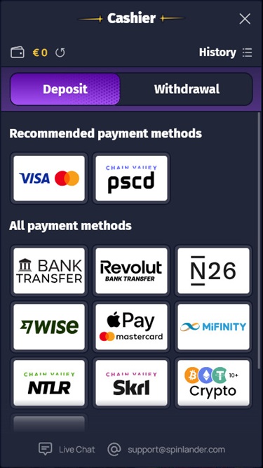 Além de caça-níqueis online, jogos de mesa e jogos ao vivo, o Spinlander Casino também oferece uma vasta coleção de jogos instantâneos e diversos outros tipos de jogos especiais, permitindo que os jogadores experimentem e explorem à vontade. Há muitas opções para escolher, e muitos irão apreciar isso.