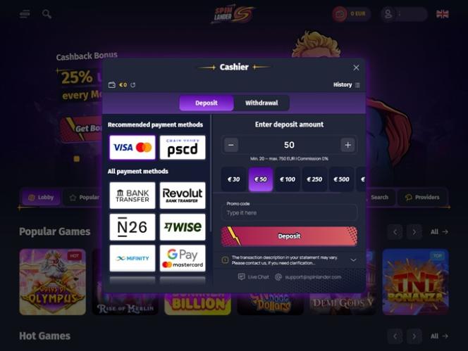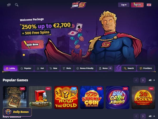 O Spinlander Casino é um site de jogos de azar moderno com uma extensa lista de atividades e jogos online. Os jogadores podem desfrutar de milhares de slots com dinheiro real, jogos de mesa, jogos com dealers ao vivo e opções de esportes virtuais, além de participar de diversas promoções, eventos e bônus. A marca também aceita criptomoedas como Bitcoin, além de muitos métodos de pagamento tradicionais, oferecendo aos jogadores muita flexibilidade bancária.
