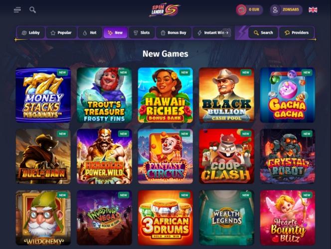 O principal atrativo do Spinlander Casino reside em seu vasto catálogo de jogos de cassino. Se você é o tipo de jogador que adora explorar e experimentar milhares de jogos diferentes, vai se divertir muito aqui. Caça-níqueis online, jogos com crupiês ao vivo , jogos de crash, jogos de mesa e esportes virtuais estão todos disponíveis, proporcionando milhares de horas de entretenimento.