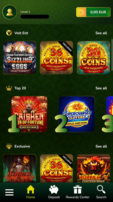 Navegar pelos jogos disponíveis é muito fácil, pois eles estão divididos em diferentes categorias: Populares, Top 20, Exclusivos, Megaways, Jogos Novos, Jogos de Crash, Raspadinhas, Jogos de Mesa, Hold'n'Win e, claro, Todos os Jogos. Graças à opção de busca, você poderá alternar facilmente entre os gêneros — basta digitar o nome ou a categoria de seu interesse e os jogos que correspondem aos critérios aparecerão!