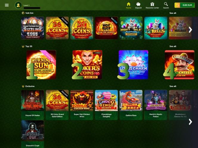 O site recebe você com uma interface relaxante em tons de verde e fácil de navegar. No lado esquerdo, você encontrará um menu que permite acessar rapidamente a página inicial, jogos com crupiê ao vivo, loteria e jogos instantâneos, central de recompensas e a aba "Mais informações". Na aba "Mais informações", você encontrará os termos de uso, a política de privacidade, a seção sobre jogo responsável, além das páginas "Sobre nós" e "Fale conosco".