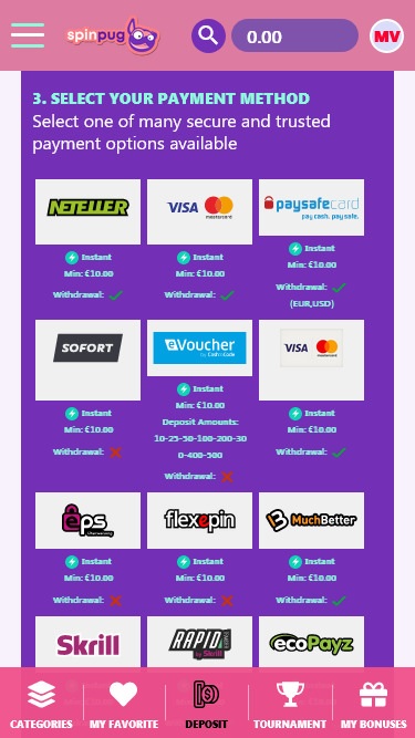Todos os jogos de cassino online incluídos na versão para desktop também fazem parte da biblioteca de jogos de cassino para dispositivos móveis, já que o SpinPug utiliza a tecnologia mais recente disponível, acompanha todas as tendências do iGaming e proporciona uma excelente experiência de jogo em qualquer lugar .