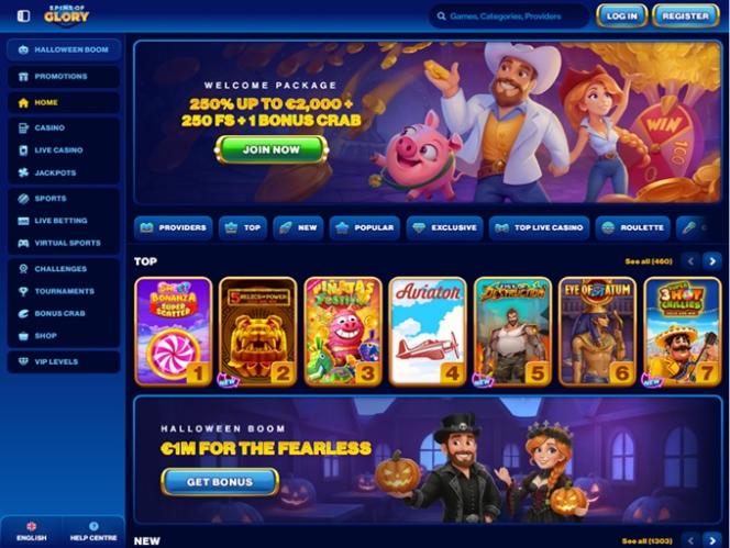 Spins of Glory é um site de cassino online e apostas esportivas completo que oferece aos jogadores uma ampla variedade de jogos e opções de entretenimento, incluindo caça-níqueis com dinheiro real, jogos com crupiês ao vivo, jogos de mesa e jogos de crash. O site também oferece diversas promoções e bônus que aprimoram significativamente a experiência tanto dos jogadores de cassino quanto dos apostadores esportivos. Os jogadores também têm a opção de usar várias criptomoedas para gerenciar seus fundos, incluindo Bitcoin e muitas outras opções.