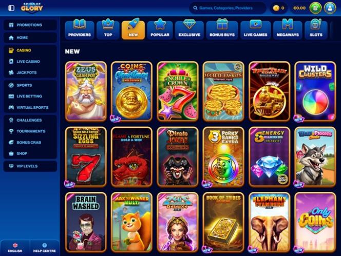 Para começar, os fãs de slots online vão adorar navegar pelas milhares de opções disponíveis. O Spins of Glory apresenta uma extensa lista de slots online em praticamente todas as categorias e gêneros, para que você possa sempre jogar alguns dos seus jogos favoritos, além de experimentar e explorar novos lançamentos e joias escondidas.