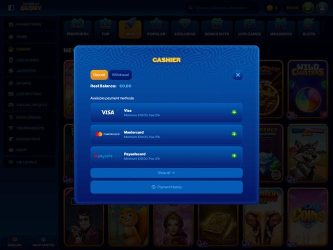 Por último, mas não menos importante, os jogadores do Spins of Glory terão acesso a uma enorme casa de apostas esportivas com centenas de opções de apostas . A casa de apostas oferece todos os esportes e eSports mais populares, além de muitos outros menos conhecidos. Os jogadores podem aproveitar os recursos de apostas ao vivo e apostar em esportes virtuais.