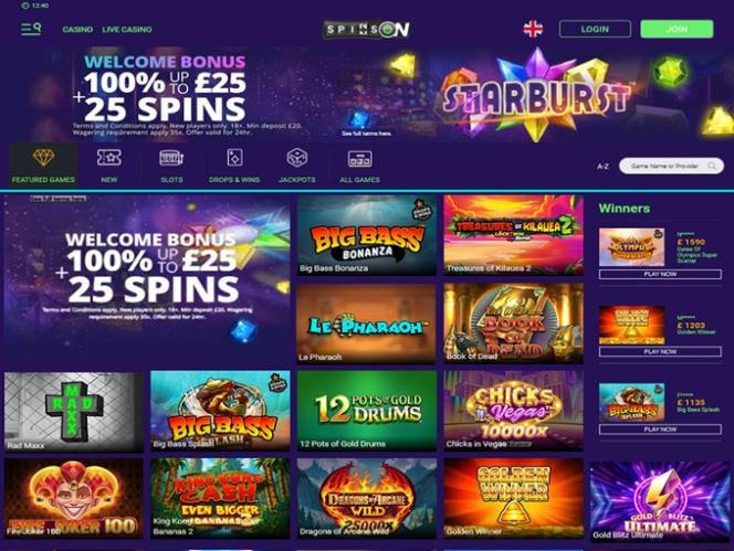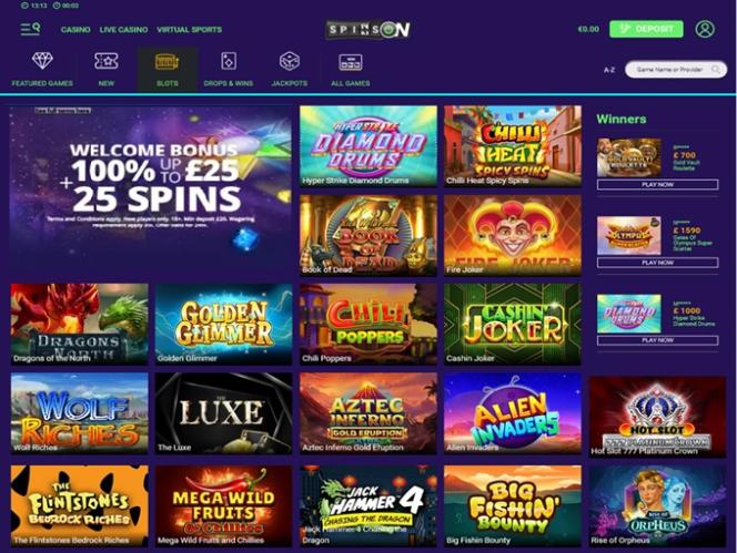 Existem centenas de slots disponíveis para jogar no Spinson Casino, sendo a maioria jogos da Microgaming e da Net Entertainment. O casino também oferece jackpots progressivos, com milhões de dólares em prémios disponíveis a qualquer momento.