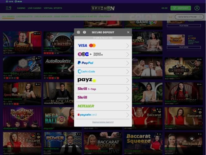 O Spinson Casino possui licença para operar jogos de azar sob a jurisdição de Malta.