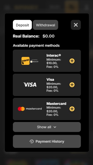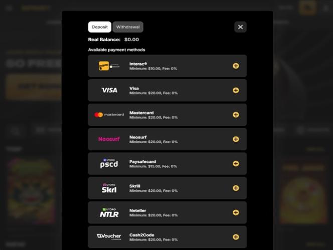 O Spinsy Casino oferece diversos métodos de pagamento que os jogadores podem usar para depósitos e saques. As opções tradicionais incluem Visa , Mastercard , Neteller , Jeton , Skrill , MiFinity e outras, enquanto os métodos modernos incluem criptomoedas como Bitcoin , Dogecoin , Tether e Litecoin .