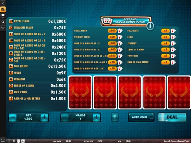 O mesmo vale para Roleta, Roleta Americana, Sic Bo, pôquer, Bacará, Dados, Vídeo pôquer, Blackjack, Blackjack Clássico