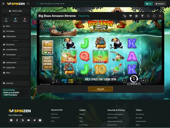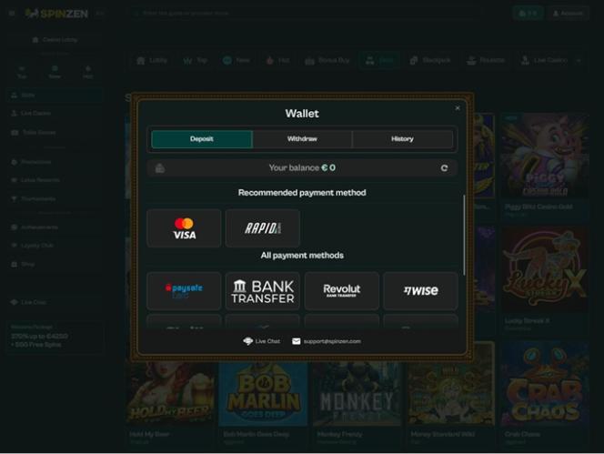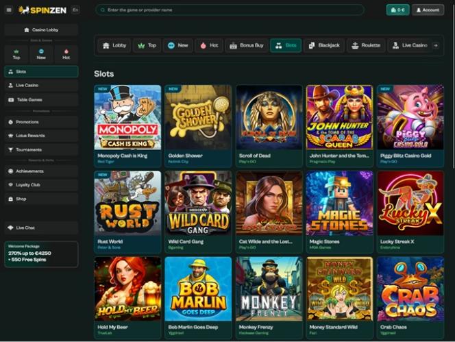 A equipe do Spinzen Casino não está para brincadeira, e dizemos isso porque eles conseguiram firmar parceria com mais de 120 fornecedores de software de iGaming e criar um portfólio de jogos verdadeiramente versátil , que é constantemente atualizado com jogos novos assim que são lançados: Net Entertainment, Playtech, BetSoft, 1x2gaming, Amatic Industries, Big Time Gaming, Evolution Gaming, EYECON, Ezugi, Habanero Systems, Oryx, Play'n GO, playson, Quickspin, Thunderkick, Yggdrasil, Wazdan, GameArt, Betgames, Booming Games, Pragmatic Play, Nolimit City, Red Tiger Gaming, Booongo, Air Dice, LuckyStreak, Spinomenal, Felix Gaming, Skillzzgaming, Fugaso, Belatra Games, Fantasma Games, FunFair, Kalamba, Spin Games, Platipus Gaming, Skywind, Spadegaming, Fazi, Evoplay, Pocket Games Soft, Bulletproof Games, Gluck Games, Mascot Gaming, NetGame Entertainment, Slot Factory, Spearhead Studios, Swintt, TrueLab Games, Mancala Gaming, 7Mojos, HungryBear Gaming, KA Gaming, Holle Games, Elysium Studios, Eurasian Gaming, Reevo, Amusnet Interactive, Blueprint Gaming, CT Interactive, Igrosoft, Tom Horn Gaming, Gamomat, Mr Slotty, Reel Time Gaming, MGA, Bally Wulff, Iron Dog Studio, Reflex Gaming, Wild Streak Gaming, Jade Rabbit Gaming, Green Jade Games, RubyPlay, 4ThePlayer, AvatarUX, Gamevy, Groove Gaming, ReelPlay, Japan Technicals Games, SlotVision, Rarestone Gaming, Black Pudding Games, Boomerang Studios, Hacksaw Gaming, Max Win Gaming, Bang Bang Games, Gamzix, Slotmill, Triple Cherry, Peter And Sons, Absolute Live Gaming, Onlyplay, FastSpin, Lucksome Gaming, Gamebeat, RAW iGaming, ELA Games, PoggiPlay, Aviatrix, TaDa Gaming, Winfinity, 3 Oaks Gaming, Amigo Gaming, Apparat Gaming, 1spin4win, Gaming Corps, Atomic Slot Lab, Reel Kingdom, Givme Games, JVL, Imagine Live, Indigo Magic, Popiplay, Zillion Games, Dream Play, Formula Spin, Clawbuster, Pixmove Games, Slotopia, Galaxsys, VoltEnt, Kitsune Studios, Orbital Gaming, Ready Play Gaming, InOut Games, Turbo Games and Penguin King