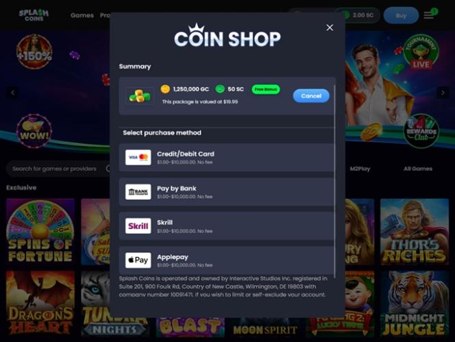 Fundado em 2025, o Splash Coins é um novo cassino de sorteios que visa proporcionar uma experiência de jogo completa, oferecendo uma vasta biblioteca de caça-níqueis no estilo cassino e uma diversificada seleção de promoções, bônus e eventos. O site aceita jogadores dos Estados Unidos e os convida a participar da diversão e experimentar tudo o que a marca tem a oferecer.