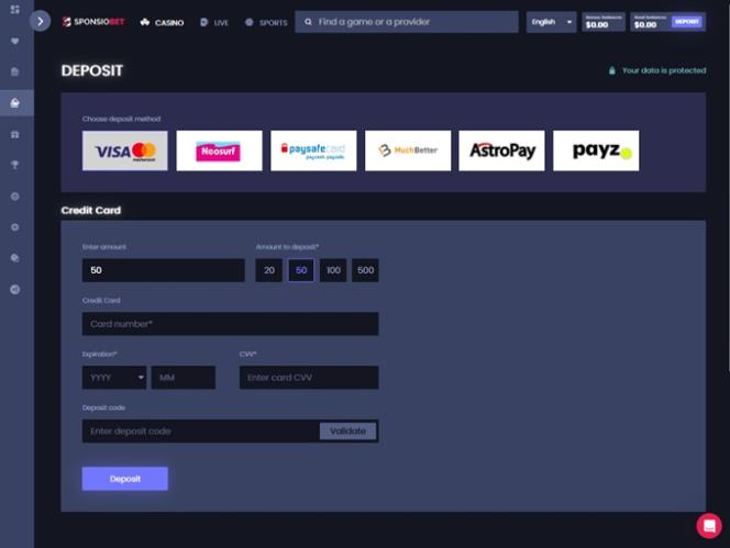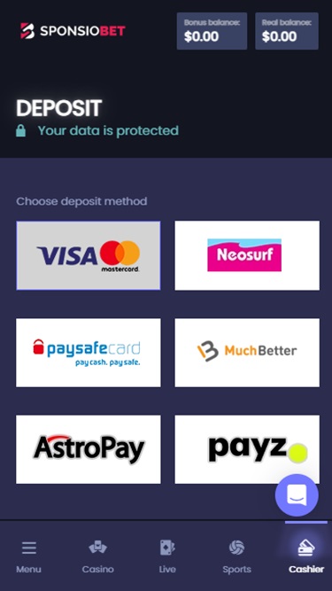 No que diz respeito às opções de depósito e saque, os jogadores podem escolher entre uma variedade de métodos de pagamento, como Visa , Mastercard , Neteller , PayPal , Paysafecard , Skrill e Payz . Infelizmente, até o momento, não há como usar criptomoedas como método de pagamento.