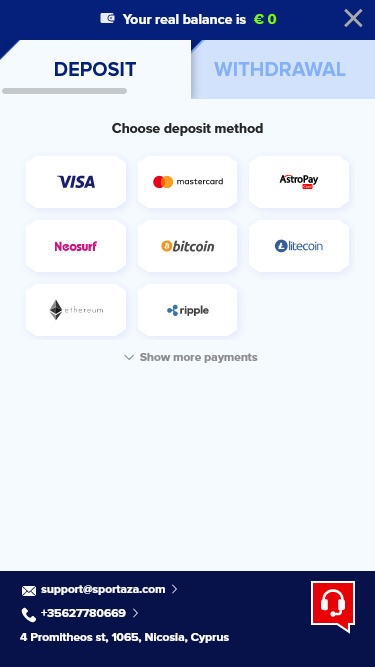 - A Sportaza reserva-se o direito de definir os limites mínimos e máximos de depósito a seu critério.