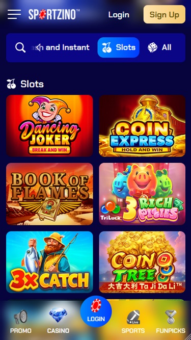 Os entusiastas de slots vão adorar a vasta gama de jogos disponíveis no Sportzino. Mergulhe no extenso catálogo, que apresenta uma seleção diversificada de slots online , incluindo os lançamentos mais recentes, clássicos atemporais, Megaways, Hold'n Links e uma variedade de outros gêneros emocionantes.