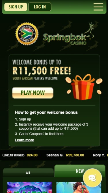 O Springbok Casino concede pontos de fidelidade na proporção de 1 ponto para cada R10 apostados. Os jogadores podem trocar 100 pontos por R1 no cassino.