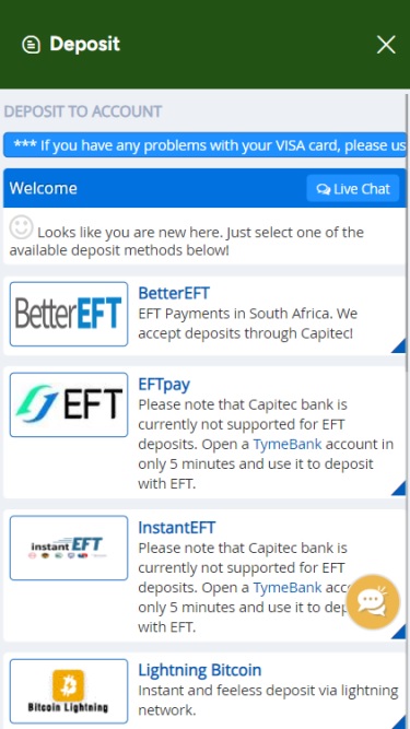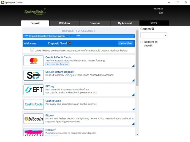 Ao analisar os termos e condições da Springbok, não encontramos nada que se destaque como injusto ou predatório em relação aos jogadores. O sistema bancário do Springbok Casino é bastante eficiente, pois o cassino processa pagamentos e depósitos via Visa, Skrill, Neteller e ecoPayz. Depósitos também estão disponíveis via Mastercard, enquanto saques podem ser feitos por transferência bancária. Há um limite de saque de 25.000 Rands, e os pagamentos são processados em 4 a 6 dias úteis.