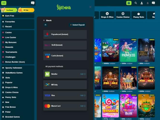 O StakeMania Casino é um cassino online voltado para clientes do Canadá, Polônia, Noruega e Dinamarca. Naturalmente, todos os outros jogadores interessados em participar desta plataforma devem verificar se podem criar uma nova conta, já que este cassino está aberto a jogadores de diversas outras jurisdições de jogos de azar.