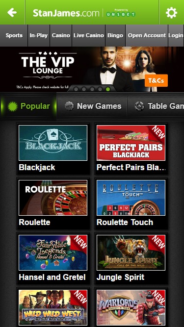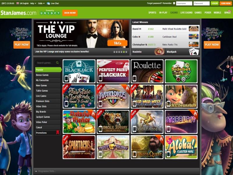O Stan James Casino é operado pela Amaya, Microgaming, Net Entertainment, Barcrest, Big Time Gaming, Genesis Gaming, lightningboxgames, Quickspin, Rabcat, Realistic Games, Stakelogic, IGT, Games Global, 2by2 Gaming, Aristocrat, Ash Gaming, bluberi, Blueprint Gaming, Games Warehouse, Leander Games, NextGen, Push Gaming, WMS and Geco Gaming e os jogos do cassino são oferecidos através de uma plataforma de jogo instantâneo baseada na web. Todos os aspectos do cassino estão disponíveis através do seu navegador, sem a necessidade de baixar qualquer software pesado para jogar. O cassino também aceita jogos em dispositivos móveis, permitindo que você jogue pelo seu smartphone ou tablet.