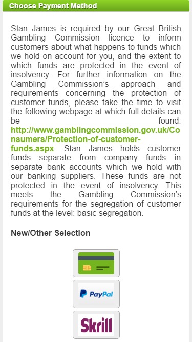 Stan James é uma importante marca de apostas com sede no Reino Unido. O grupo foi fundado em 1973 e construiu uma rede de lojas físicas em todo o país, empregando centenas de pessoas. O cassino expandiu suas operações para o ambiente online há alguns anos e agora oferece apostas esportivas, jogos de cassino e pôquer aos seus clientes. O cassino tem uma excelente reputação e eu recomendo fortemente que você jogue neste site, se tiver a oportunidade.
