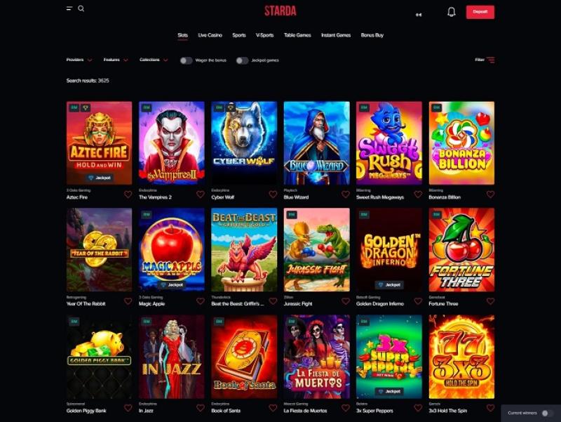 Como já mencionamos, esta operadora experiente colabora com desenvolvedores de software de cassino online mundialmente famosos, que fornecem conteúdo de jogos de alta qualidade . O portfólio da Starda inclui títulos de cassino atraentes, desde slots online a jogos com crupiê ao vivo, e oferece uma excelente experiência de jogo para todos os tipos de jogadores.