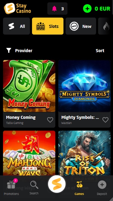 Com uma sólida seleção de mais de 35 fornecedores de software e um programa completo de iGaming, o Stay Casino orgulha-se de oferecer um poderoso portfólio com mais de 4.000 títulos. Seus lobbies incluem slots, roleta, cassino ao vivo, blackjack, jogos de mesa e bingo, abrangendo desde marcas líderes de mercado já consolidadas, como BGaming , GameART e Playson, até estúdios promissores com ideias criativas e conceitos de jogos sofisticados, como BetSoft, Evoplay, Mascot, Nolimit City e outros.