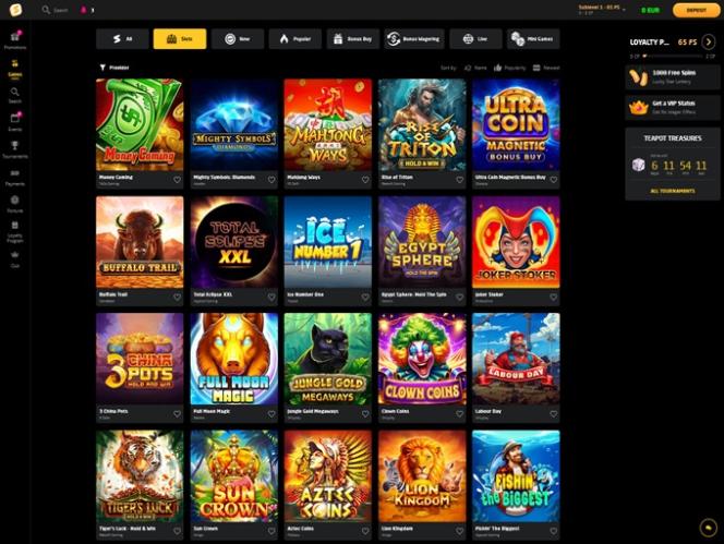 Explorar toda a coleção de slots é uma tarefa hercúlea, já que seu catálogo ostenta mais de 4.000 títulos diferentes, fornecidos por uma seleção de alta qualidade de mais de 35 fornecedores de software. Seu magnífico acervo pode ser filtrado por popularidade, data de lançamento ou provedor, bem como em ordem alfabética.