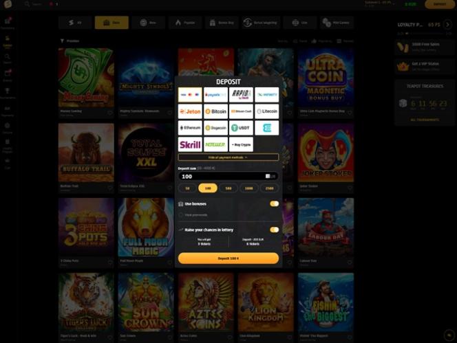 Como uma estação de jogos moderna com vários métodos de pagamento disponíveis, os jogadores podem escolher entre os métodos tradicionais e Os métodos de depósito e saque são modernos e o tempo de processamento é instantâneo . No entanto, o valor máximo de saque por semana ou mês é bastante limitado, enquanto os prêmios maiores são divididos em parcelas mensais. Os pagamentos por transferência bancária são processados em 5 a 7 dias úteis e os jackpots progressivos são pagos integralmente.