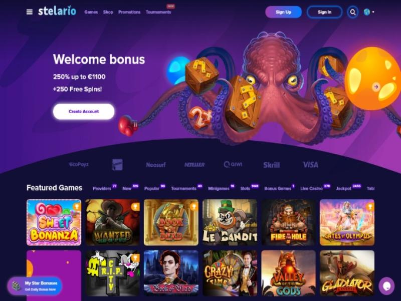 O Stelario é um site de apostas online operado pela Altacore NV e fundado em 2020. O site possui um tema escuro muito agradável e oferece uma enorme biblioteca de jogos, com mais de 3.400 títulos disponíveis no momento desta avaliação. O site também apresenta bons prazos de pagamento, termos de bônus decentes e um bom suporte ao cliente. Em resumo, é um cassino que certamente merece sua atenção.Informações do cassino