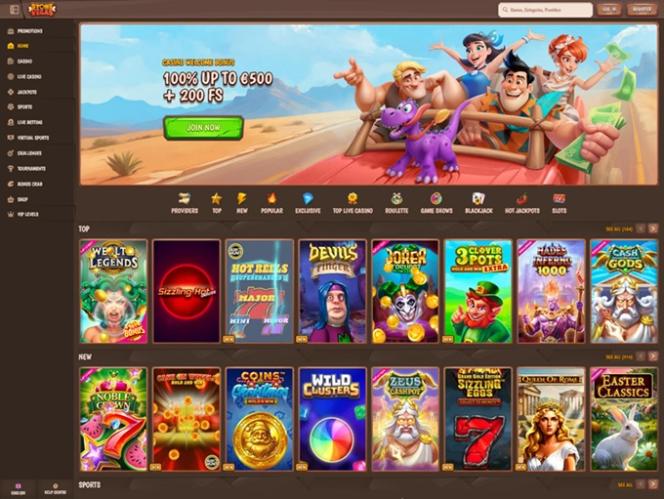 De imediato, ficamos intrigados com o design e o tema geral do site, inspirado no mundialmente famoso desenho animado "Os Flintstones". Os jogadores encontrarão um tema pré-histórico com belas ilustrações de vários personagens e uma paleta de cores vibrantes que se integra perfeitamente à interface do usuário do site, que é fácil de navegar.