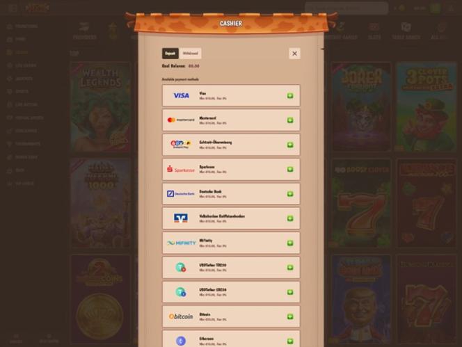 O cassino aceita diversas moedas fiduciárias e criptomoedas.