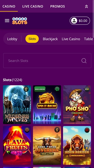 O Super Slots Casino é alimentado por BetSoft, Rival, Visionary iGaming, Betgames, Arrows Edge, Nucleus Gaming, Concept Gaming, Fresh Deck Studios, PureRNG, Dragon Gaming, FlipLuck and Dragoon Soft e o software é fornecido através de uma plataforma web atraente que você acessa no seu navegador de internet favorito. O casino possui suporte integrado para dispositivos móveis, permitindo que você jogue slots no seu smartphone e tablet.Outros jogos