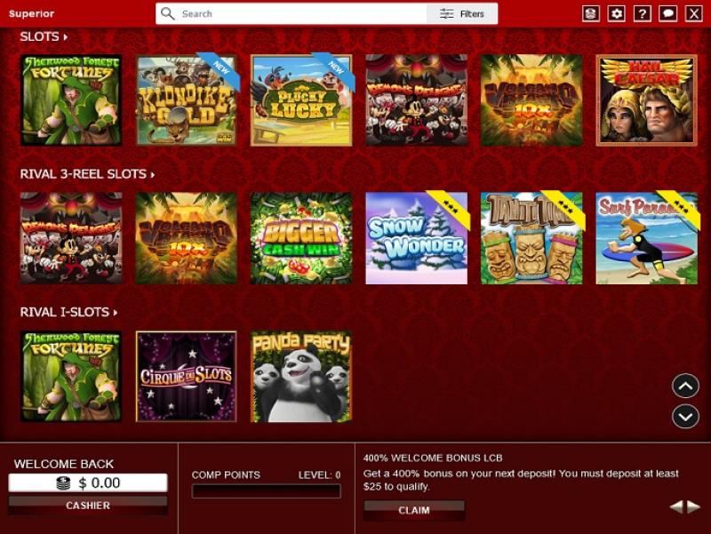 O Superior Casino oferece uma boa variedade de slots, tanto de vídeo quanto clássicos. Além disso, há diversos jackpots progressivos disponíveis, dando aos jogadores a chance de ganhar grandes prêmios em dinheiro.