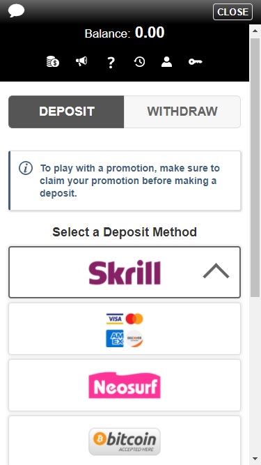 Olá, registrei-me aqui com um NDB de $ 75. Gosto dos jogos, embora eu pudesse jogar principalmente caça-níqueis com o bônus, apostei meu bônus e vejo que você não pode sacar $ 75, o saque mínimo diz 150 euros $? Falei no chat e eles disseram que poderiam usá-lo como parte do meu primeiro depósito sem receber nenhum bônus nos $ 75. Parece bom, fechei o cassino e li sobre isso no site. Cerca de $ 50 de cobrança para saques e quanto tempo demora. Pensei que não confiaria neles a menos que depositassem um saque na minha conta sem problemas, então não vou depositar aqui. Voltei e disse não se preocupe com isso, me diverti em seus jogos, mas vou fechar minha conta. Quando voltei 30 minutos depois, havia $ 75 na minha conta e agora eu podia jogar qualquer jogo sem fazer o primeiro depósito. 5 minutos no DUECES WILD, ganhei $ 188 para jogar agora, boa diversão. Eu realmente não sei o que significa essa cobrança de US$ 50 para saque, isso é realmente uma droga. Eu não teria depositado. Fora isso, foi muito bom.