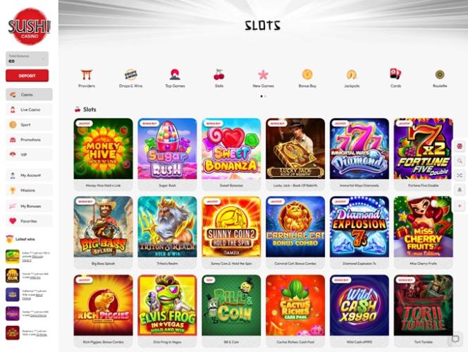 O Sushi Casino acompanha as últimas tendências e oferece uma enorme coleção de slots. Inclui jogos atraentes para todos os gostos.