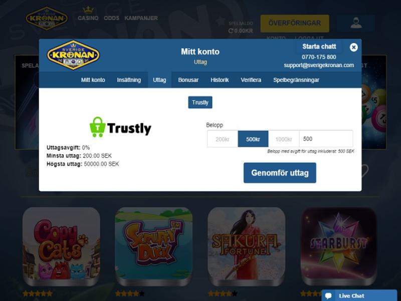 O SverigeKronan Casino oferece uma boa variedade de slots, com centenas de caça-níqueis de vídeo e dezenas de caça-níqueis clássicos disponíveis. Além disso, há jackpots progressivos para serem ganhos, com prêmios da Microgaming e da Net Entertainment oferecendo milhões em dinheiro.